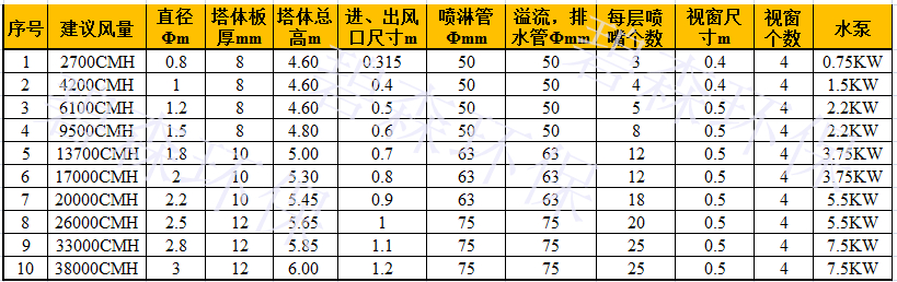 設(shè)備本身包含有本體、填充層、除霧層、循環(huán)灑水管路,及循環(huán)水槽等。